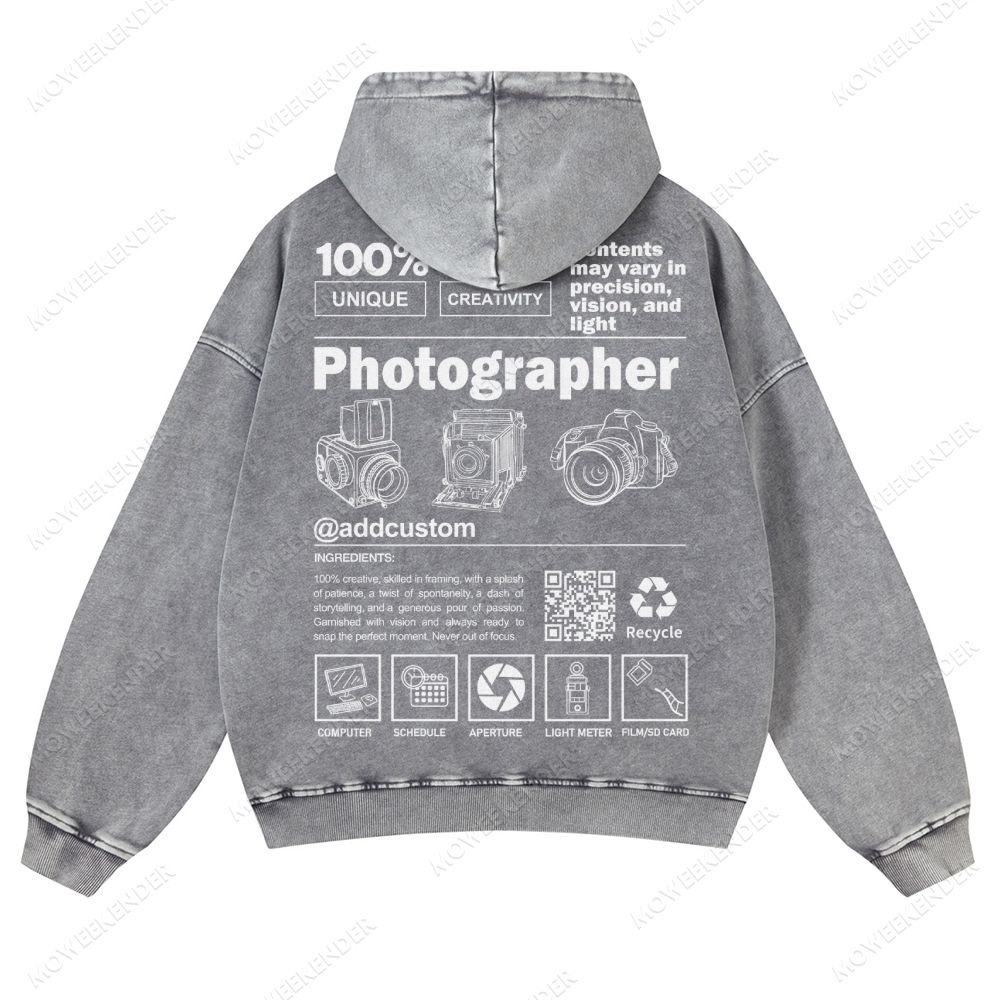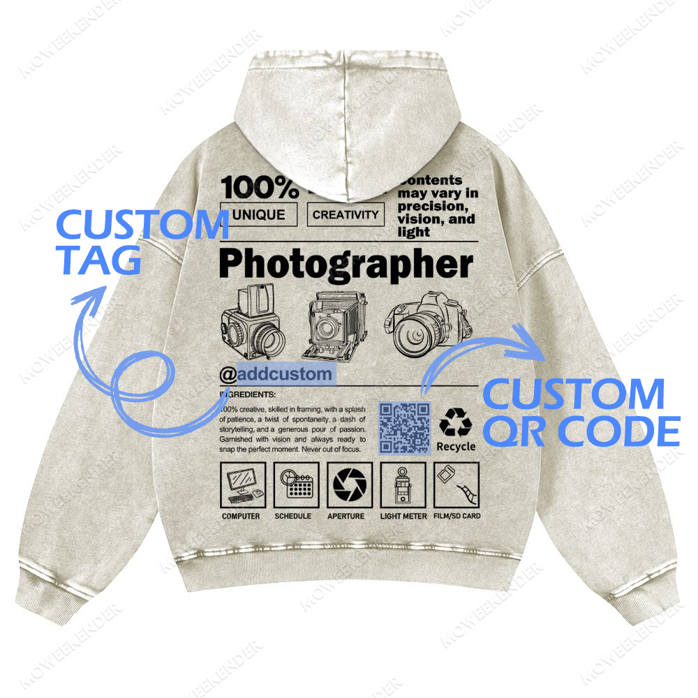 Photographer QR Code Customized Unisex Fit Vintage Washed Hoodie