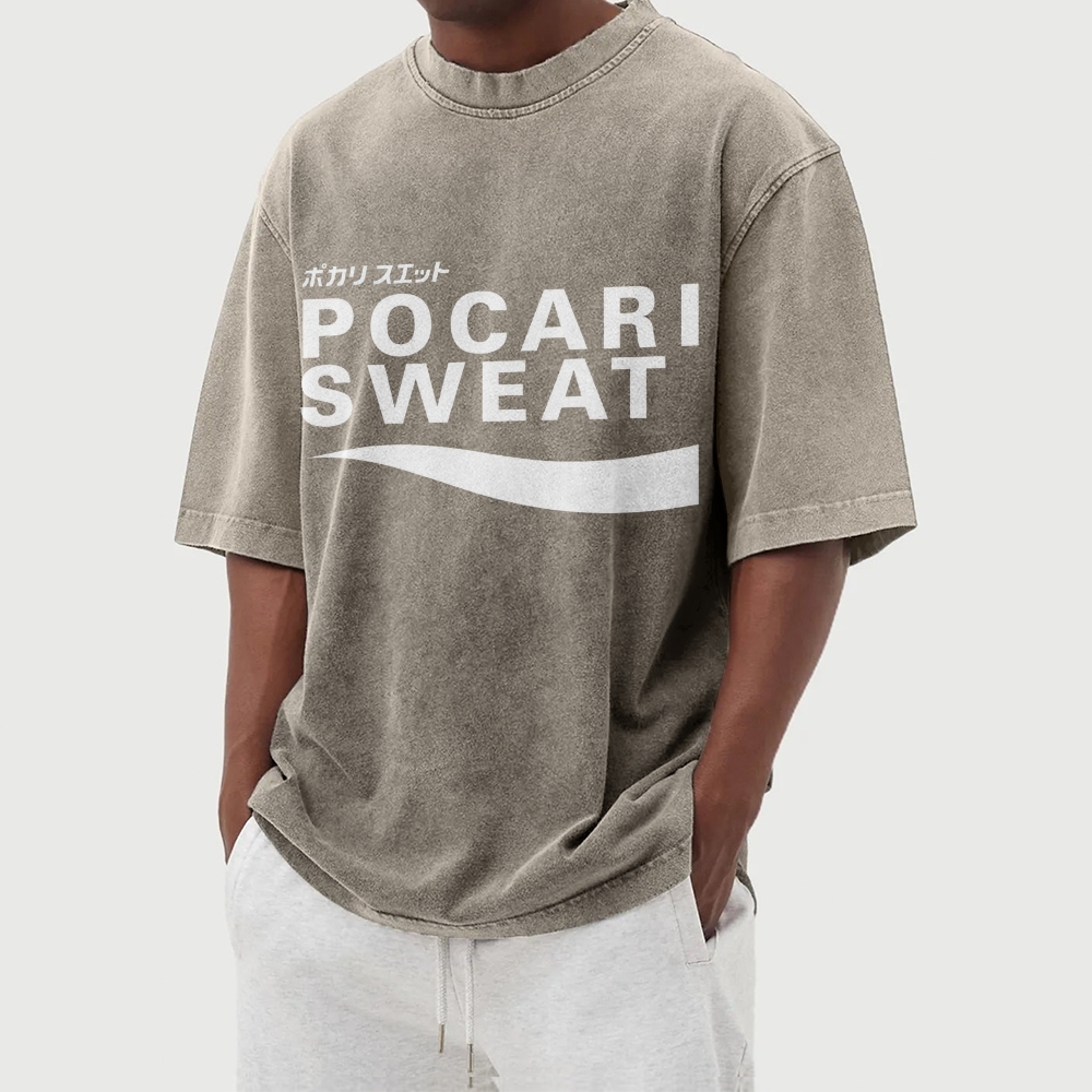 POCARI SWEAT Logo Washed Vintage Short Sleeves T-Shirt