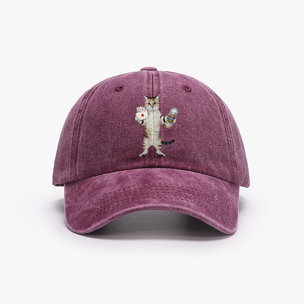 Poker & Beer Cat Juice Head Unisex Washed Vintage Baseball Cap