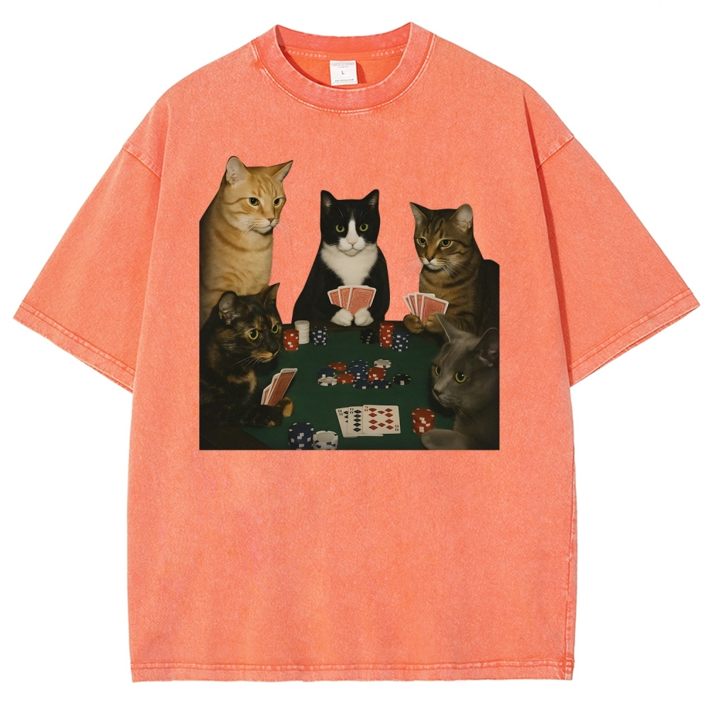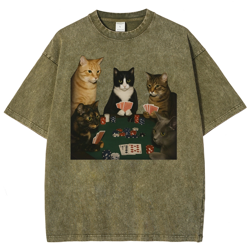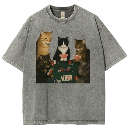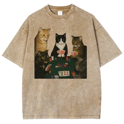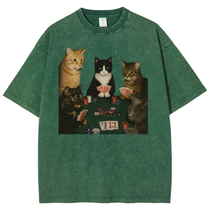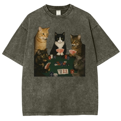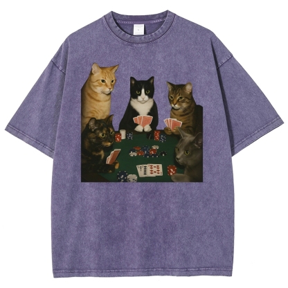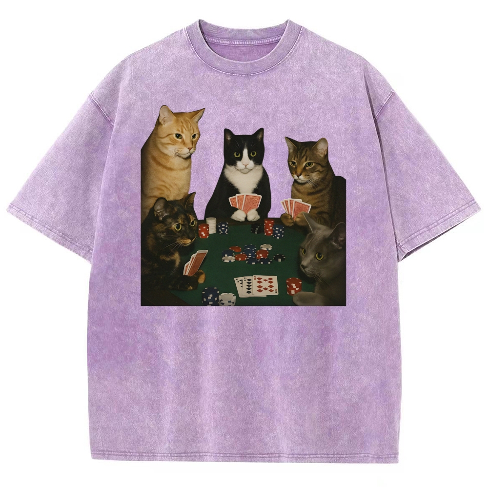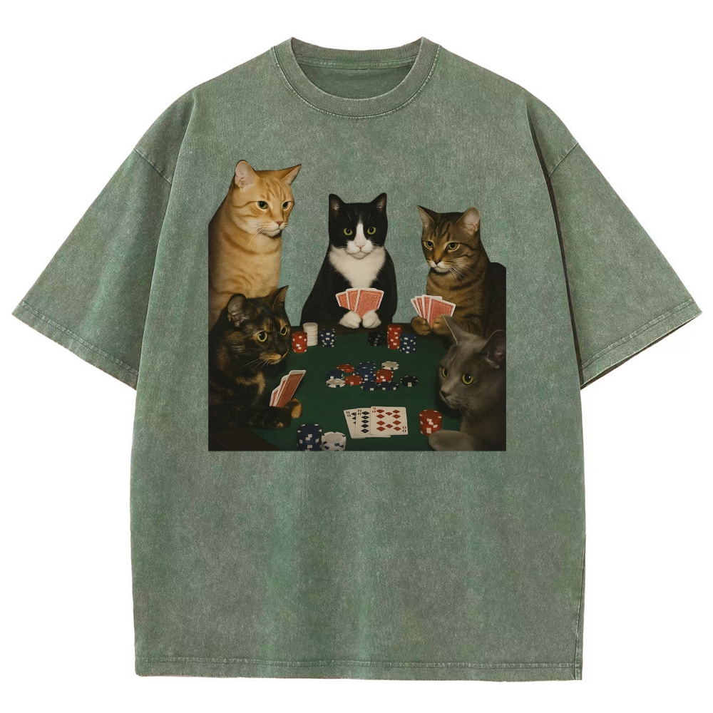 Poker Player Cat Unisex Fit Washed T-Shirt