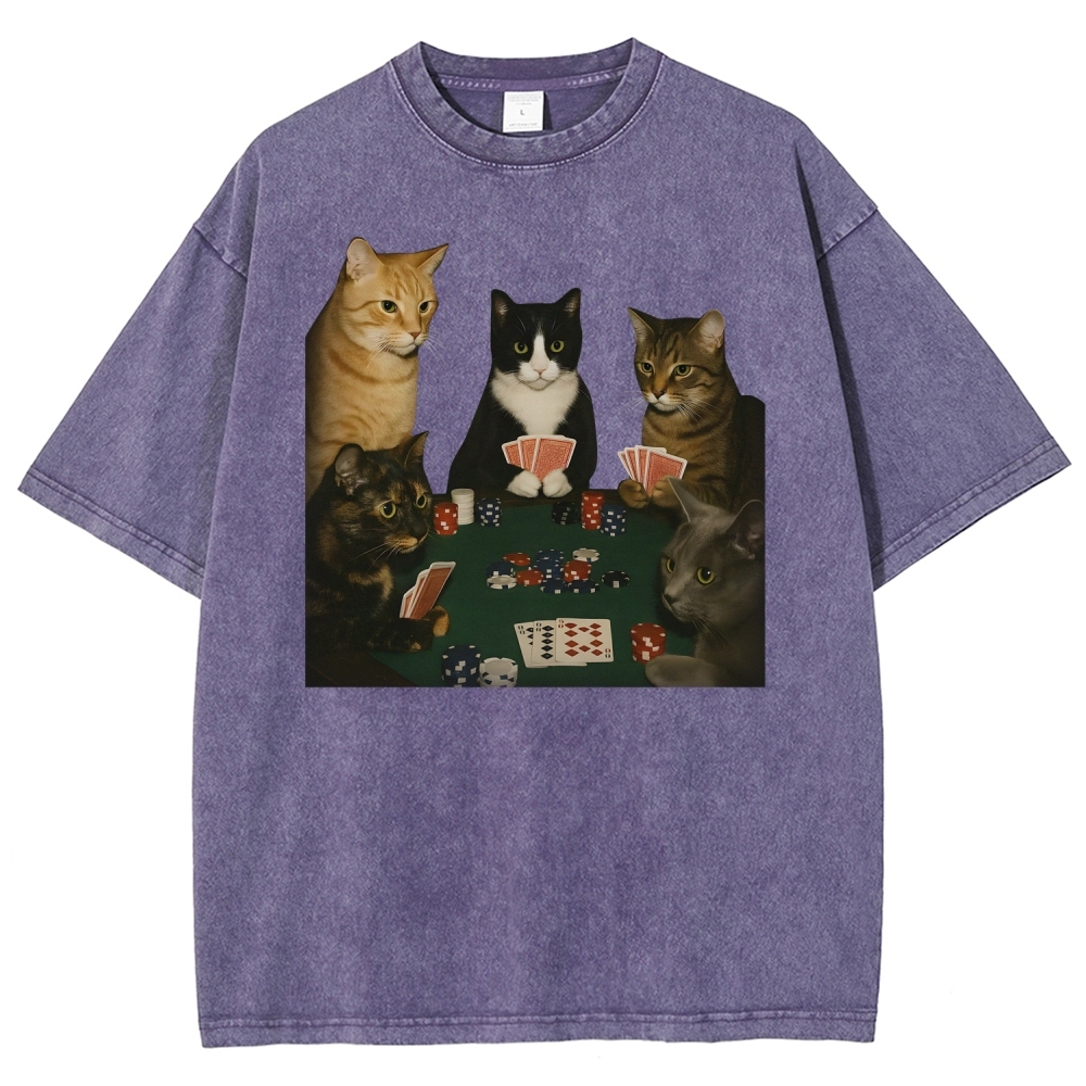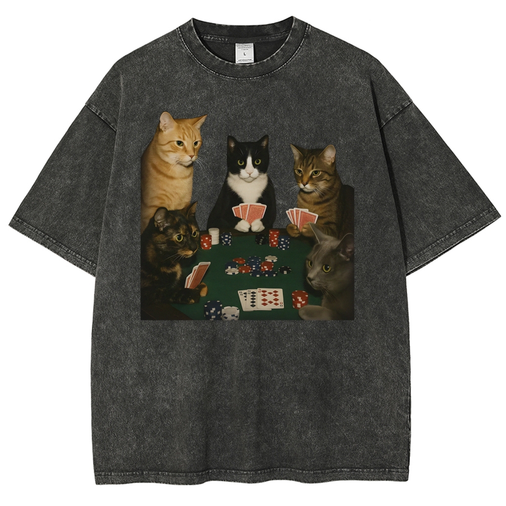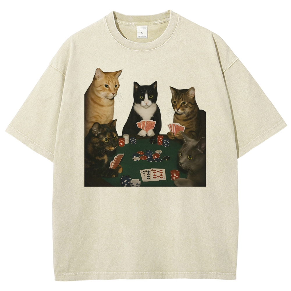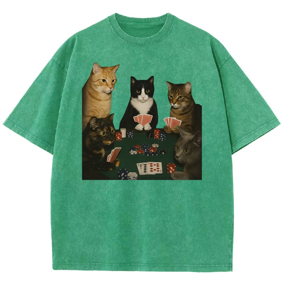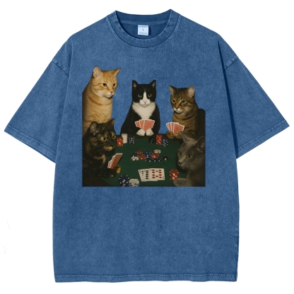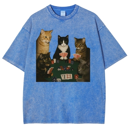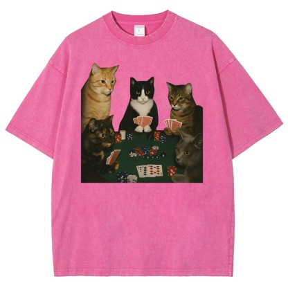 Poker Player Cat Unisex Fit Washed T-Shirt