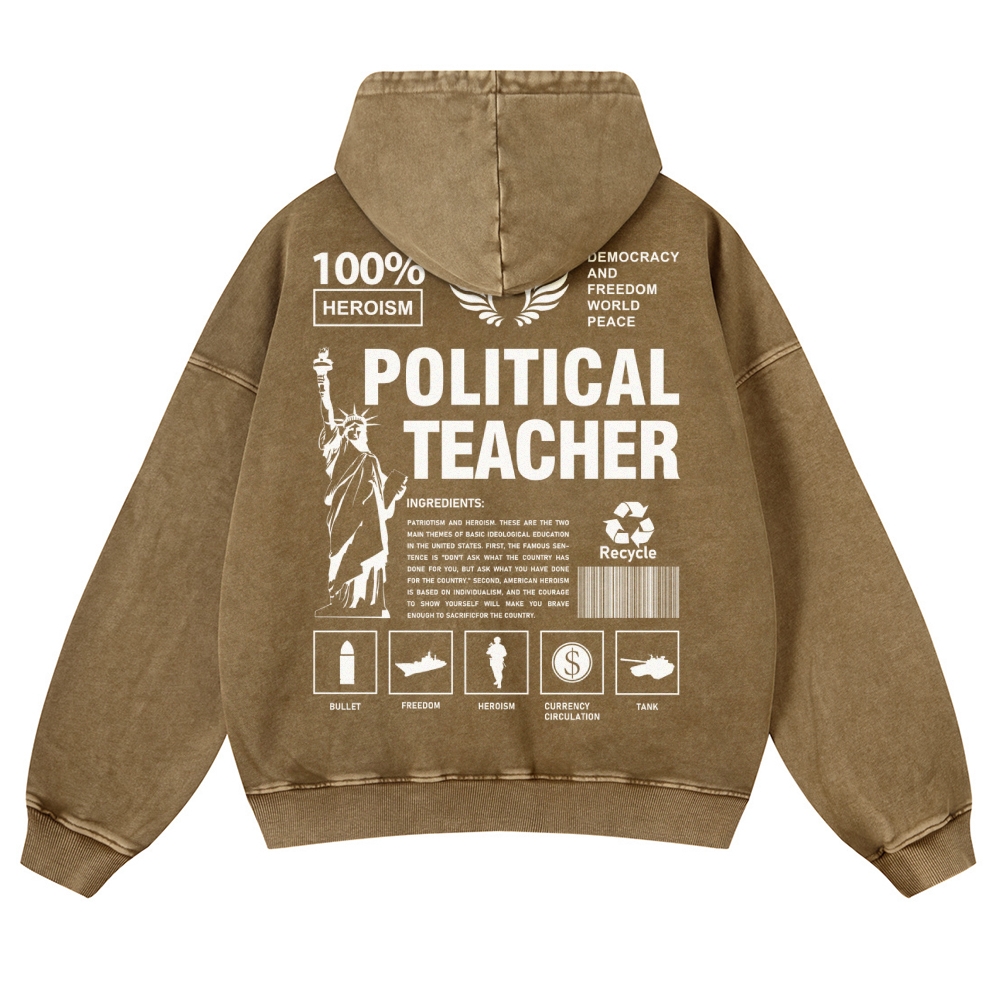 Political Teacher Unisex Fit Vintage Washed Hoodie