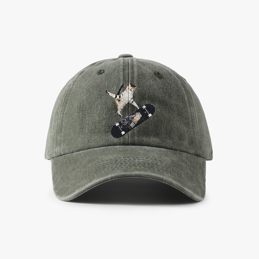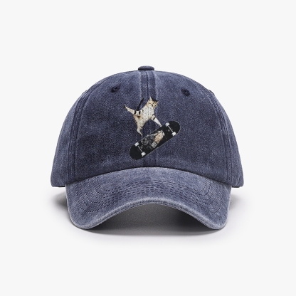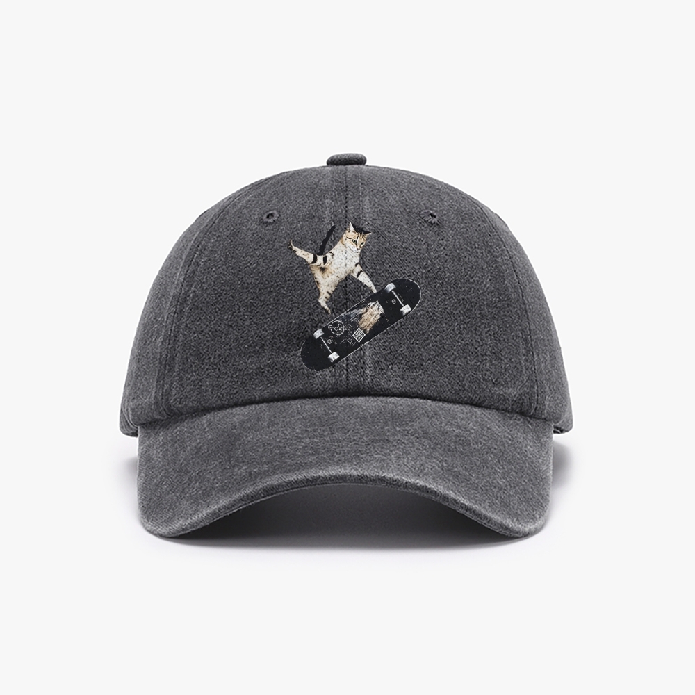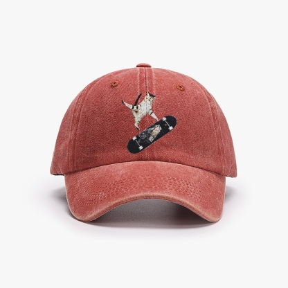 Skateboard Cat Unisex Washed Vintage Baseball Cap