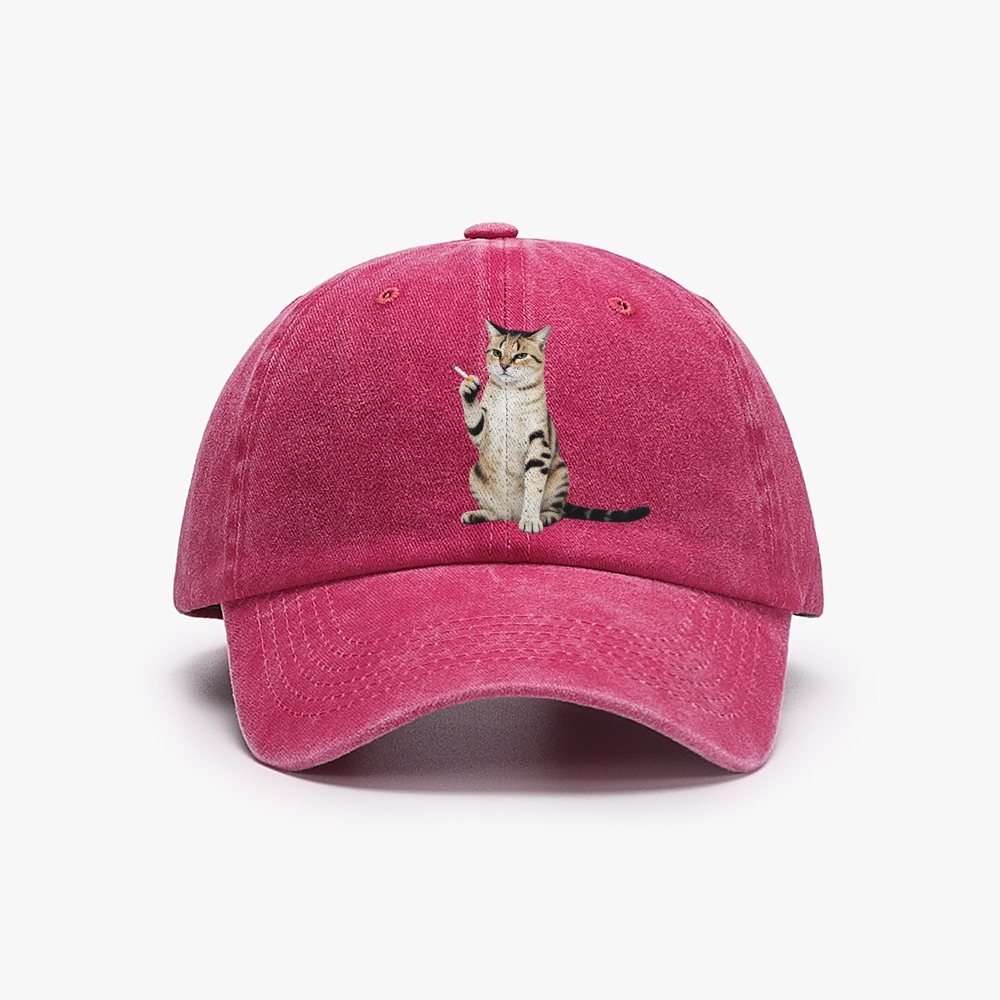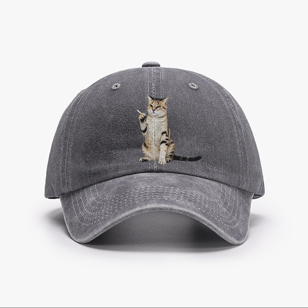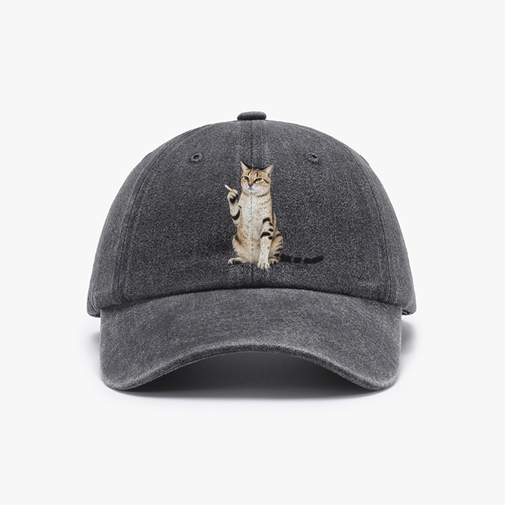 Smoking Cat Unisex Washed Vintage Baseball Cap