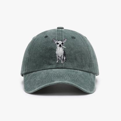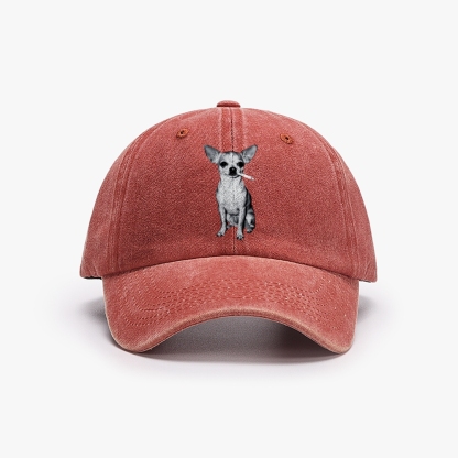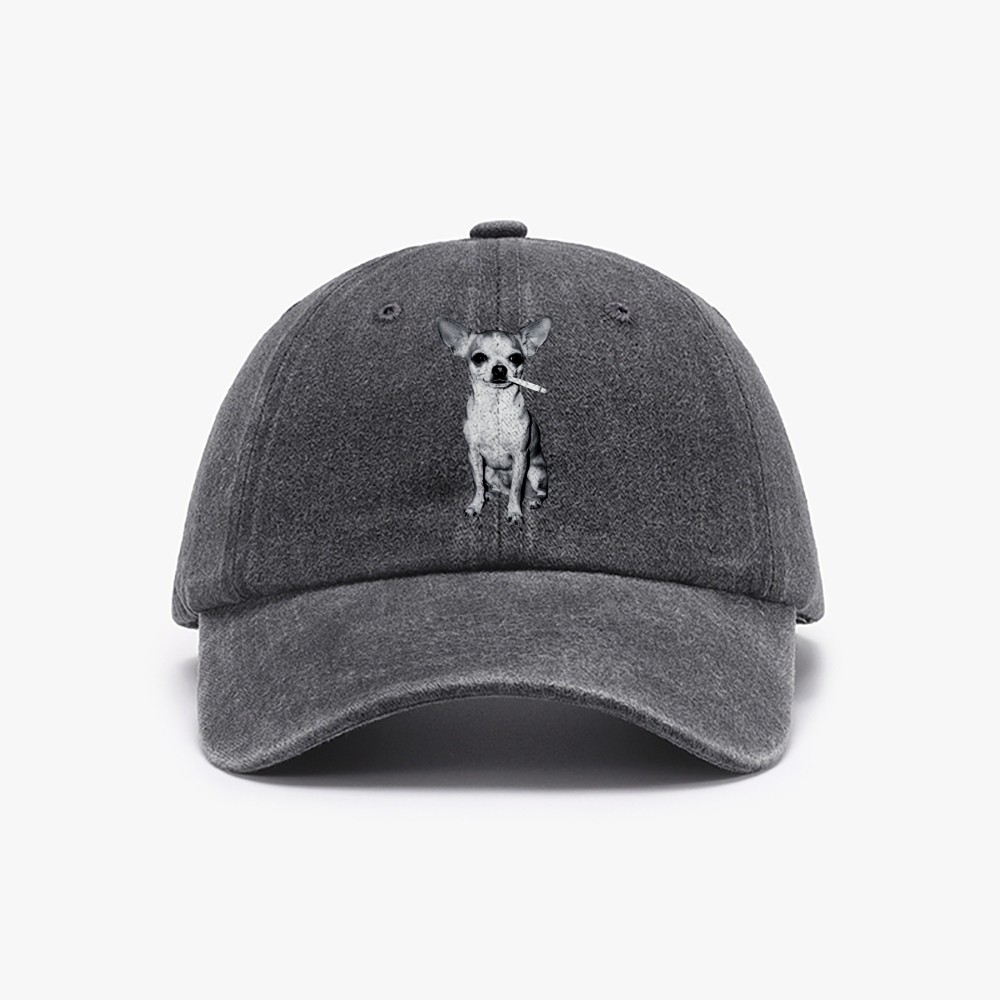 Smoking Dog Chihuahua Black&White Unisex Washed Vintage Baseball Cap