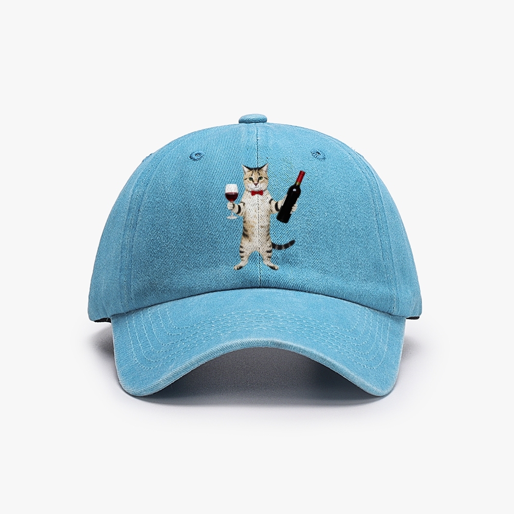 Sommelier Cat Unisex Washed Vintage Baseball Cap