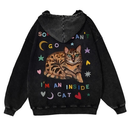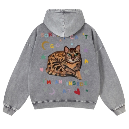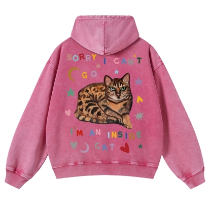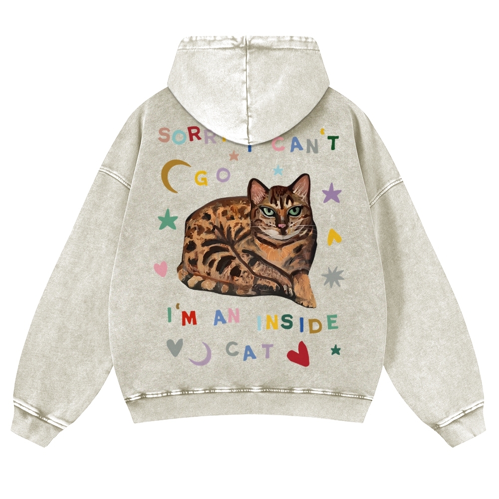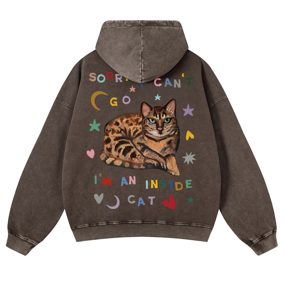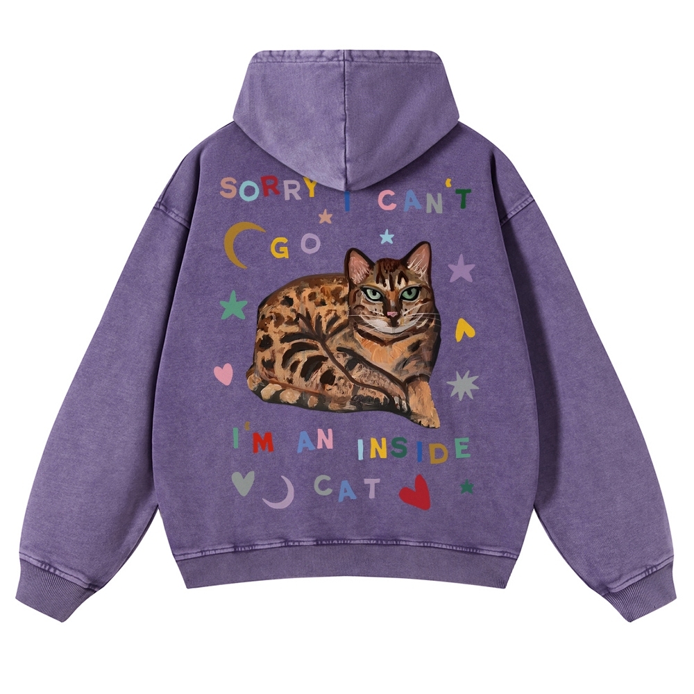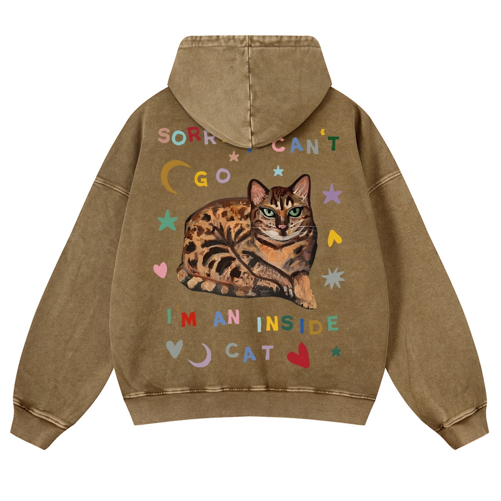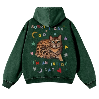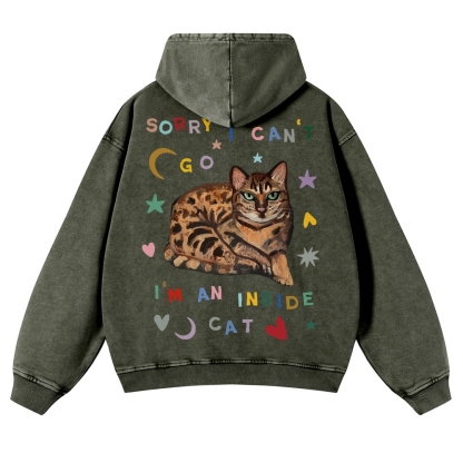 Sorry I Can't I An Inside Cat Unisex Fit Vintage Washed Hoodie