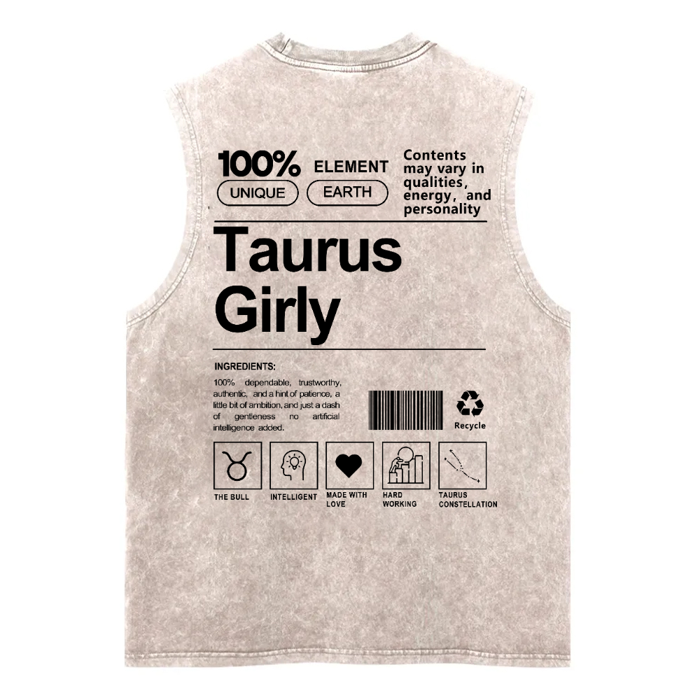 Taurus Girly Washed Fitness Tank Top