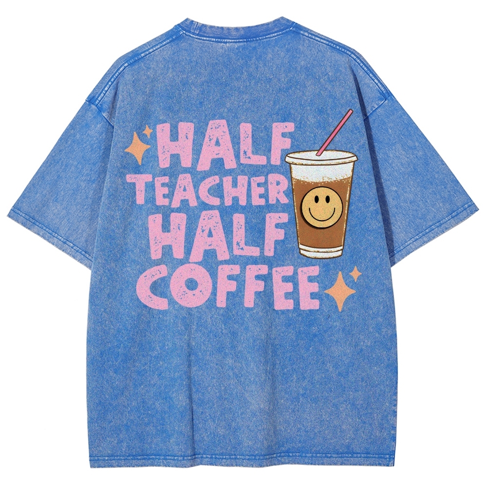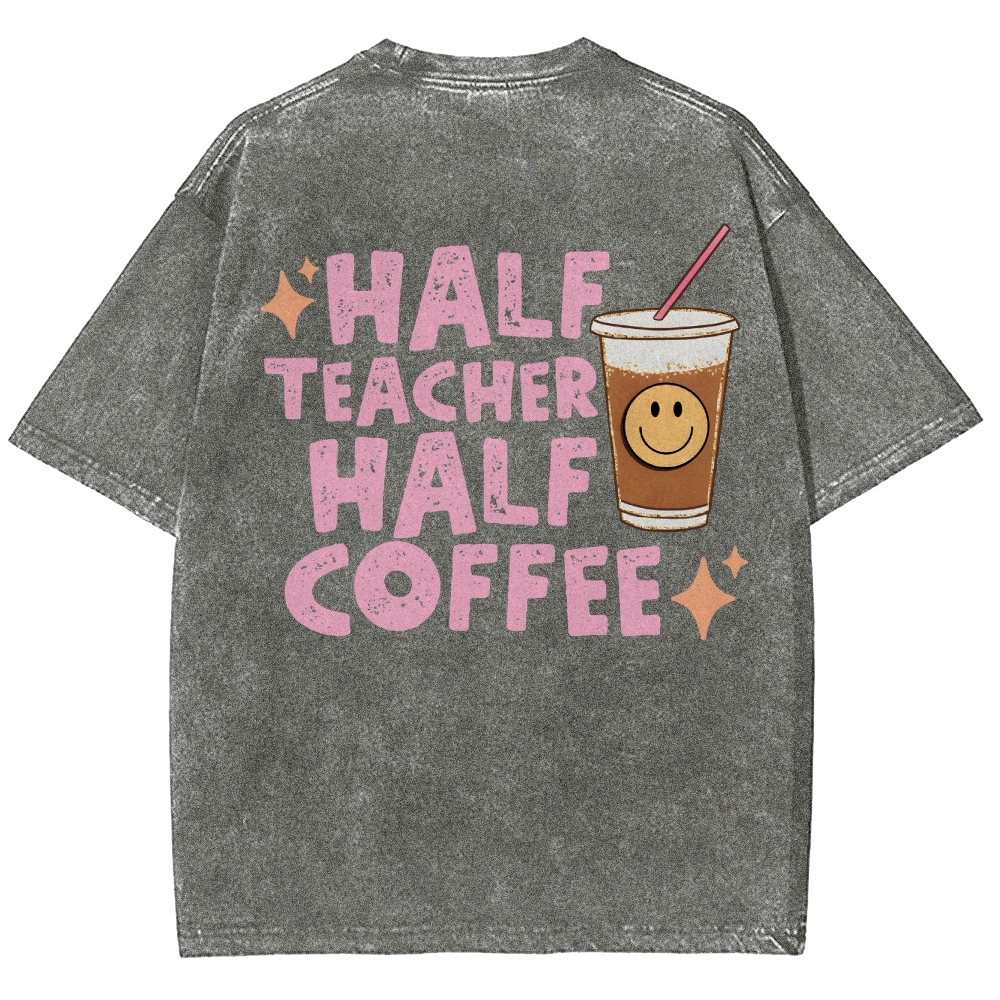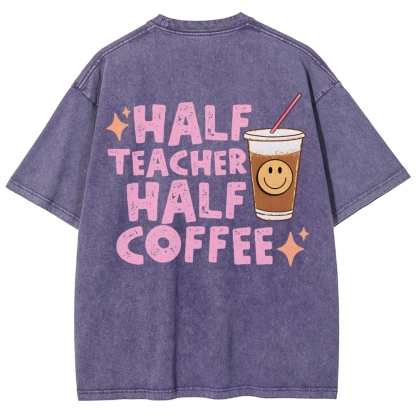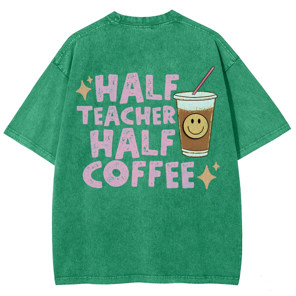 Teacher Half Teacher Half Coffee Unisex Fit Washed T-Shirt