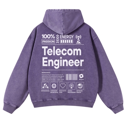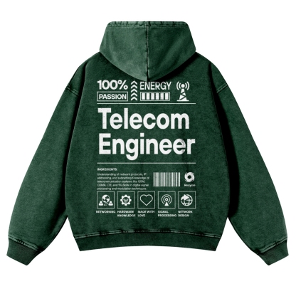 Telecom Engineer Unisex Fit Vintage Washed Hoodie