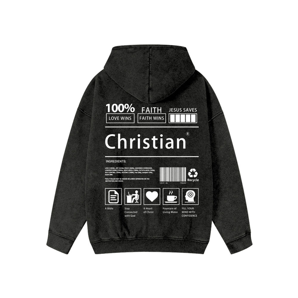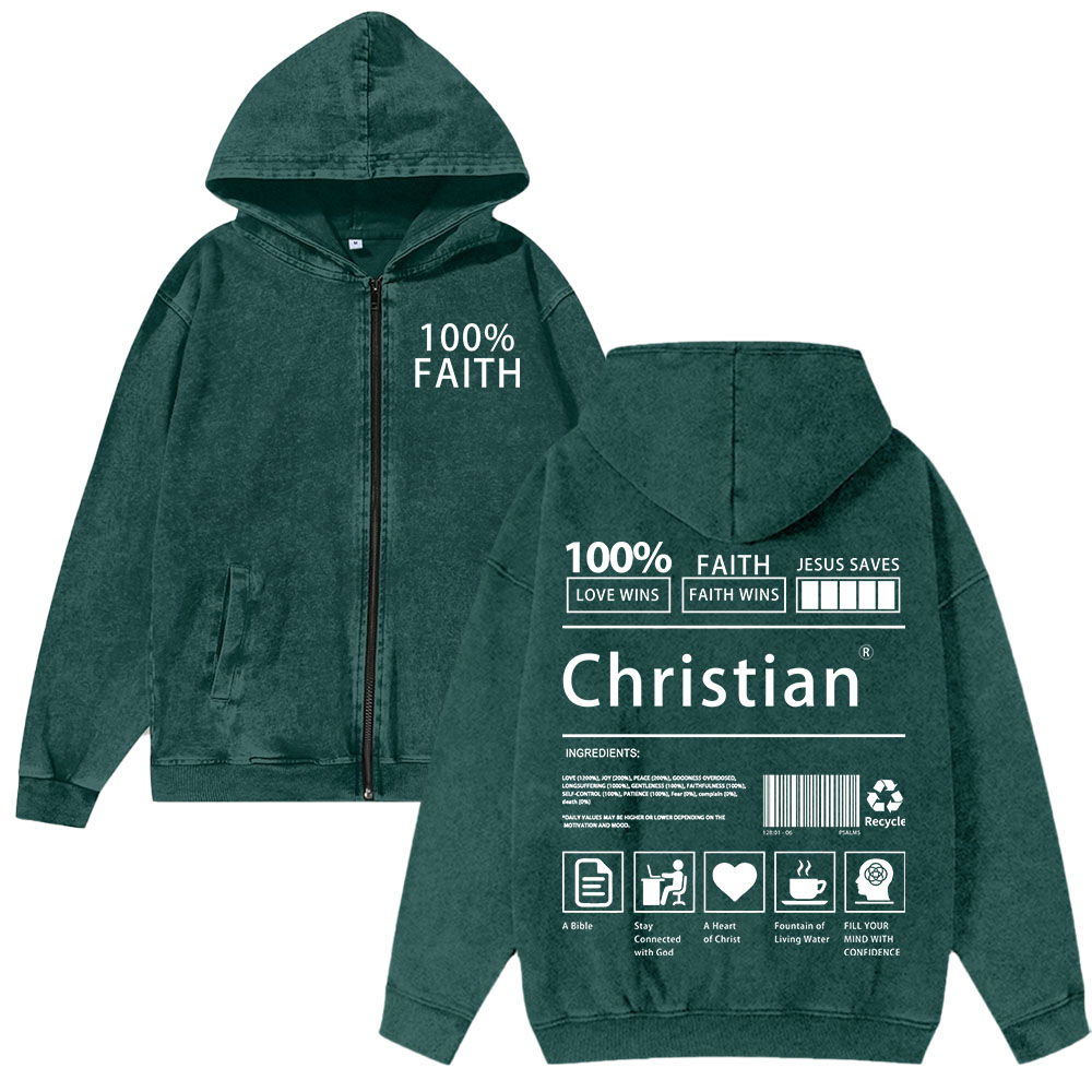 Unisex Christian Faith Washed Cotton Zipper Hooded Sweatshirt