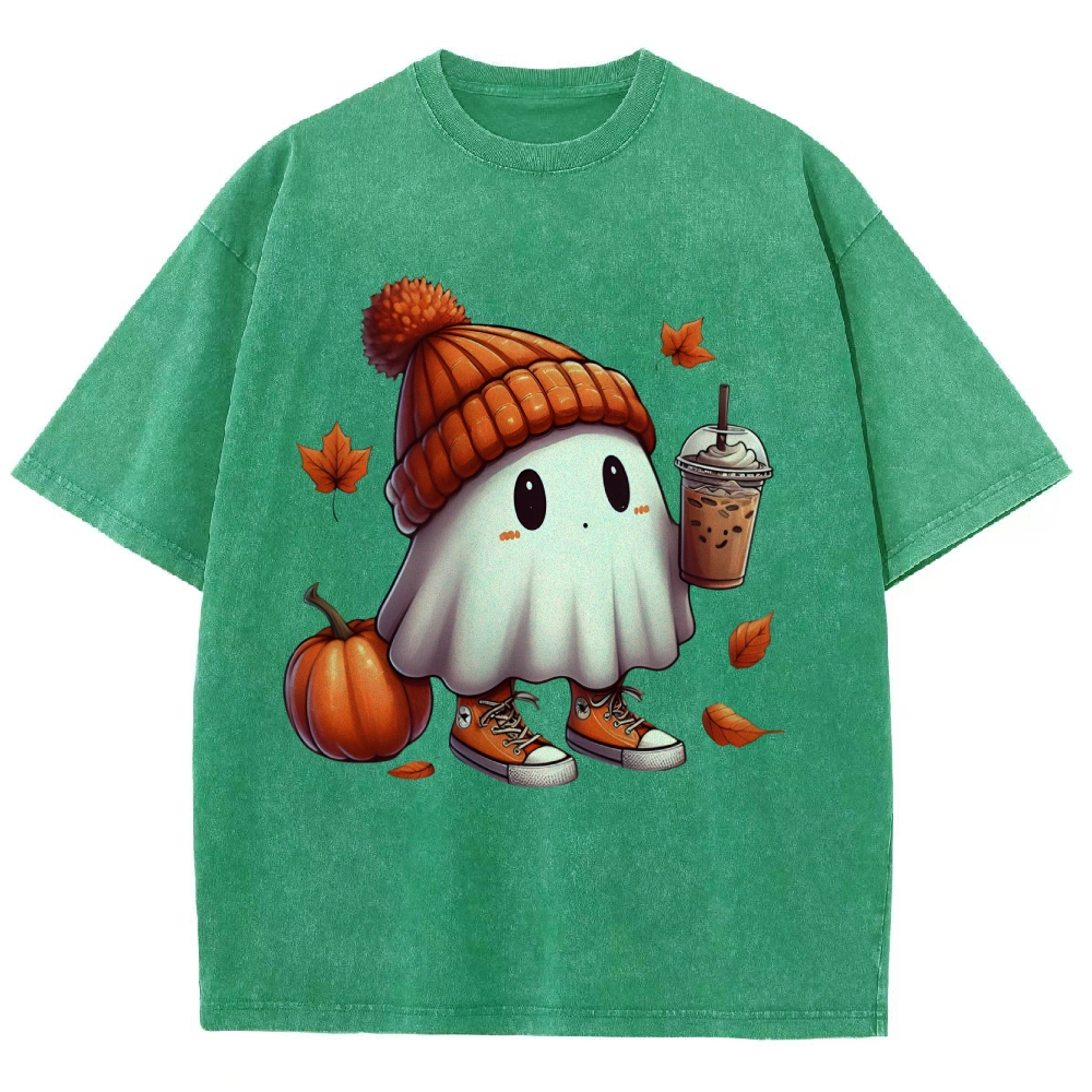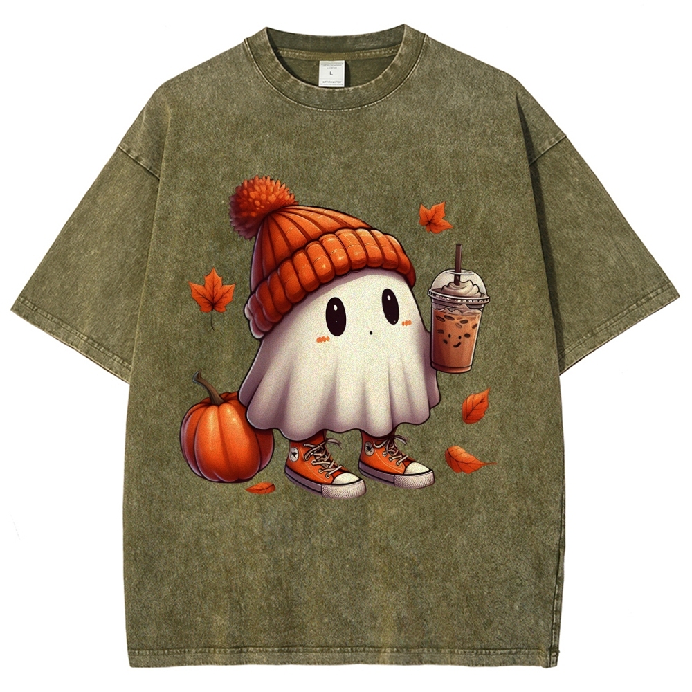 Unisex Fit Halloween Trendy Ghost Washed T-Shirt