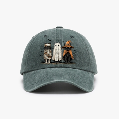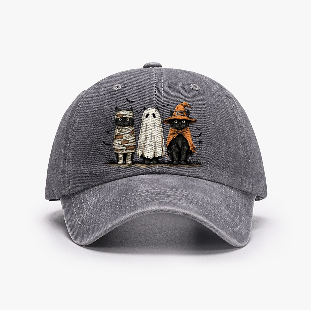 Unisex Washed Vintage Three Cats Halloween Baseball Cap
