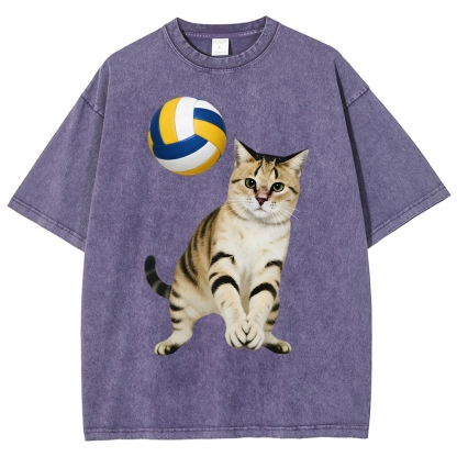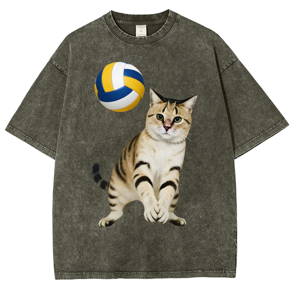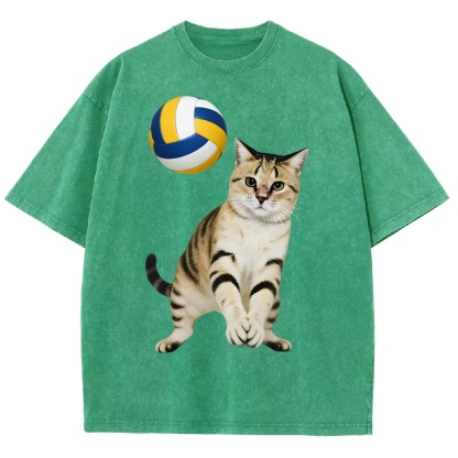 Volleyball Player Cat Unisex Fit Washed T-Shirt