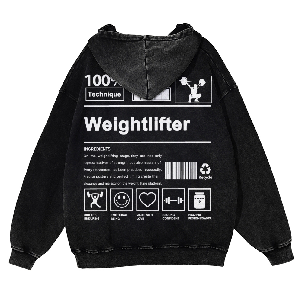 Weightlifter Unisex Fit Vintage Washed Hoodie