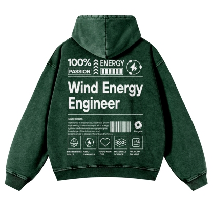 Wind Energy Engineer Unisex Fit Vintage Washed Hoodie