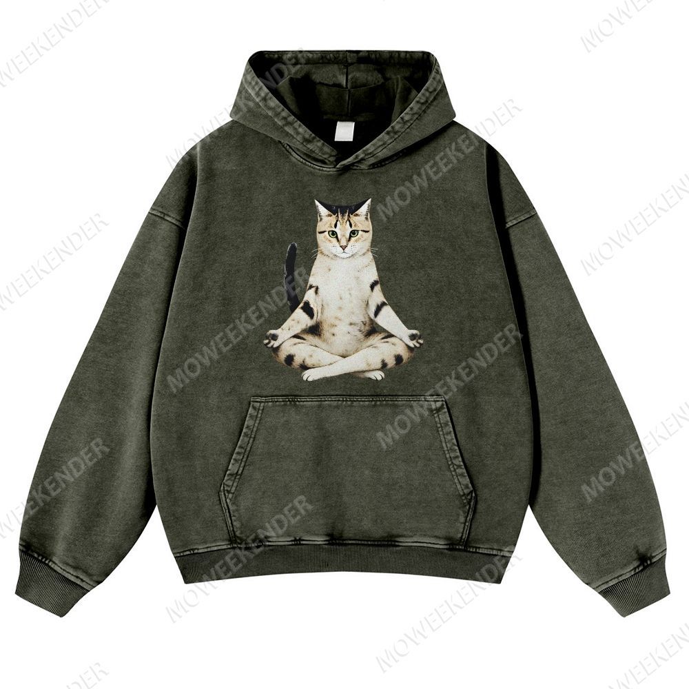 Yoga Cat Unisex Fit Vintage Washed Hoodie